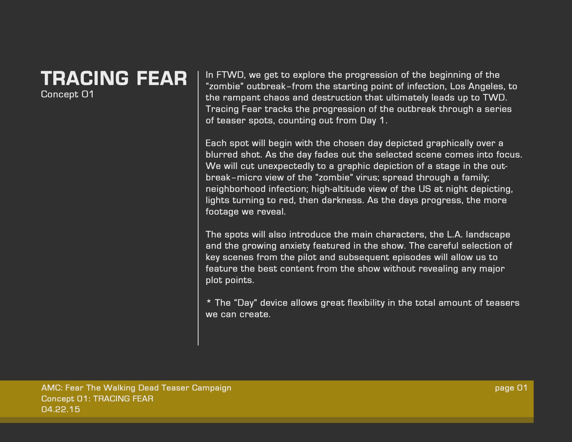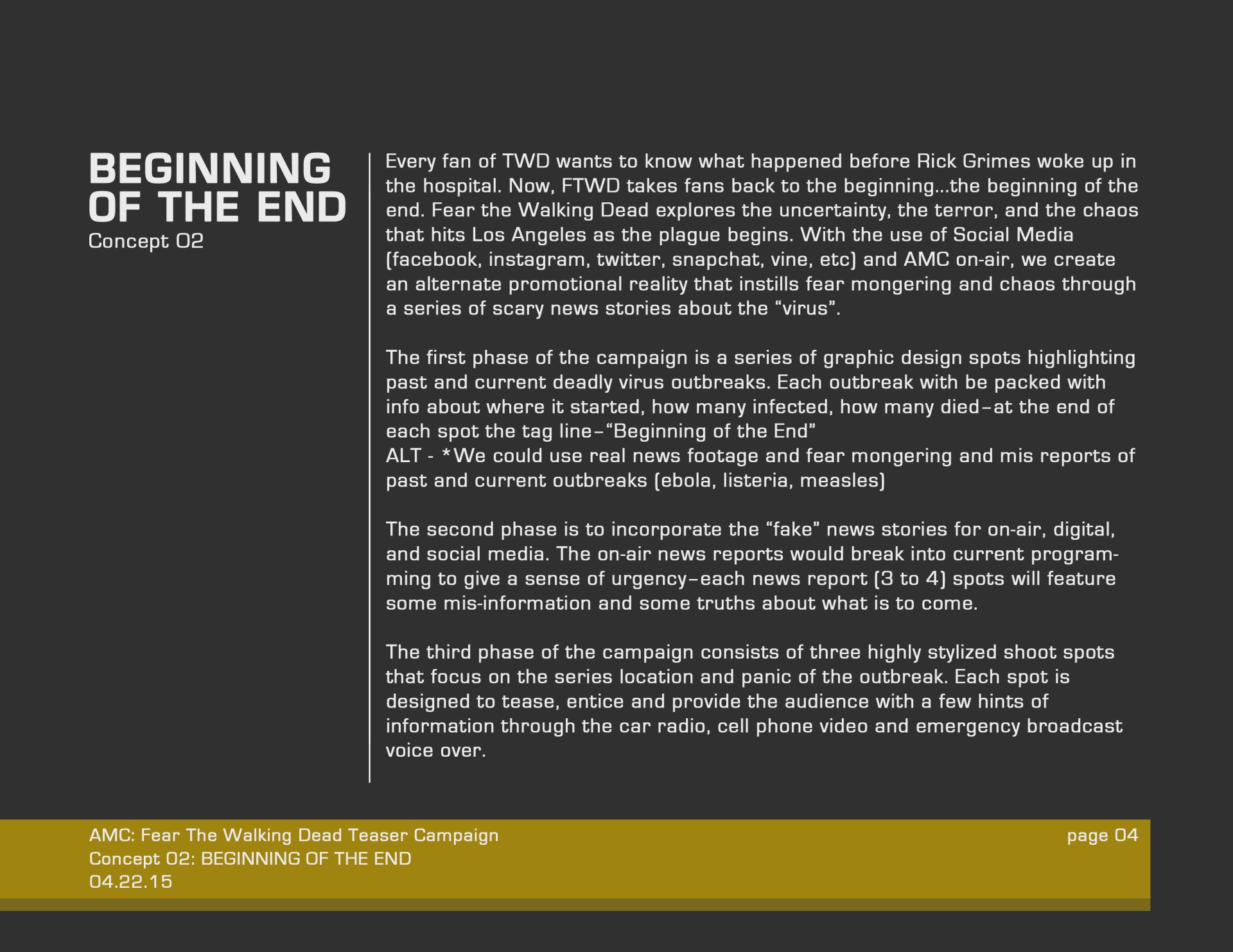 Approached by AMC to pitch ideas for the launch of “Fear The Walking Dead”